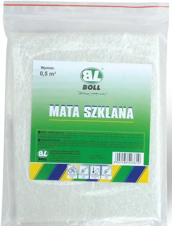 BOLL MATA SZKLANA 300G/M2 0.5M2 Mata wpołączeniu zżywicą poliestrową BOLL służy do wypełniania znacznych ubytków materiału wkaroseriach samochodowych, łodziach, przyczepach itp. jak ido wzmacniania iusztywniania konstrukcji naprawianych elementów. Dostępne gramatury: 300, 450g/m2. Wymiar 0,5m2. INDEKS: 002194