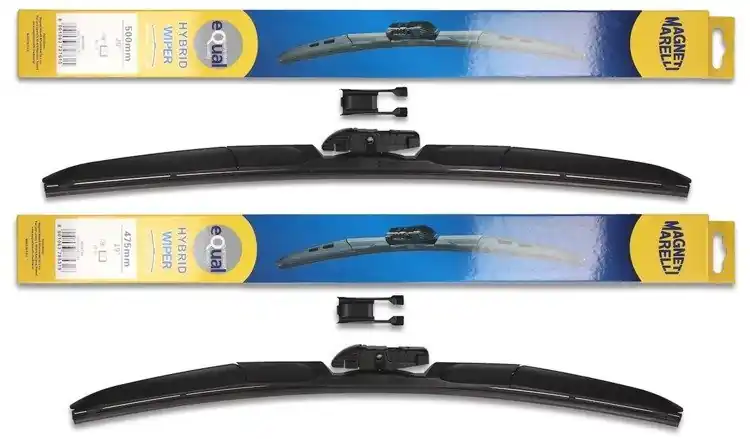 Wycieraczki są nowe – w oryginalnym opakowaniu producenta – cena zakupu dotyczy 1-kompletu (odpowiednio dobrane długości i modele wycieraczek – strona kierowcy oraz pasażera). Wycieraczki hybrydowe Magneti Marelli wyprodukowane są z materiałów o najwyższej jakości:- guma – to ponad 50% kauczuku naturalnego z grafitową powłoką. Wewnątrz gumy znajduje się podwójna stal nierdzewna. Sztywne gumowe pióro z grafitową powłoką w wycieraczkach hybrydowych Magneti Marelli to skuteczne i dokładne wycieranie powierzchni szyby.- Spojler – materiał ABS- Złącze – materiał POMWycieraczki hybrydowe Magneti Marelli dzięki zastosowaniu materiałów najwyższej jakości oraz zaawansowanej technologii, bez problemu zastępują tradycyjne wycieraczki w starszych modelach samochodów. Wymiana wycieraczek jest łatwa i szybka.Wysokiej jakości materiał użyty w wycieraczkach hybrydowych Magneti Marelli sprawia, że są wytrzymałe, dobrze dopasowują się do powierzchni szyby, dzięki czemu ich praca jest cicha. Sprawdzają się również w niekorzystnych warunkach atmosferycznych; temperatura od – 25ºC do + 50ºC w żaden sposób nie zakłóca ich pracy.Wycieraczki hybrydowe Magneti Marelli pasują do większości modeli samochodów dzięki zastosowaniu jednego uniwersalnego adaptera, który może być montowany w czterech różnych wycieraczkach.Wycieraczki Magneti Marelli to jedne z bardziej poszukiwanych wycieraczek na świecie.