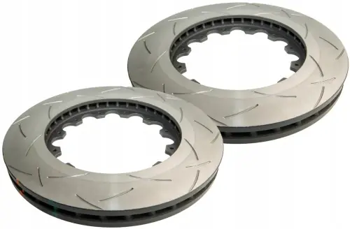 Rotory hamulcowe samochodoweDBA 52632.1S – 5000 series – T3 – Rotor Only(komplet na oś przednią)Seria 5000 – T3Tarcze hamulcowe DBA serii 5000to najbardziej zaawansowane technologicznie produkty w całej gamie DBA. Unikalna dwuczęściowa konstrukcja z wentylacją Kangaroo Paw, system profilowania temperaturowego TSP, żeliwo wysokowęglowe XG150 oraz 48 precyzyjnych nacięć T3 zapewnią wysoką skuteczność i wyjątkową odporność na ekstremalne warunki pracy.Wykonany z aluminium dzwon obniża wagętarczy oraz poprawia jej właściwości termiczne. Konstrukcja tarcz pozwala na swobodne rozszerzanie się żeliwnej części pracującej wraz ze wzrostem temperatury co ogranicza naprężenia i możliwość deformacji tarczy hamulcowej. Redukcja wagi tarczy to lepsze prowadzenie się pojazdu i mniejsze obciążenie dla zawieszenia.Poprawione właściwości termiczneto praca w niższych temperaturach co wydłuża żywotność tarcz i klocków hamulcowych, ale też takich elementów jak np. łożyska. Dwuczęściowa konstrukcja pozwala na wymianę samych zużytych rotorów i ponowne wykorzystanie aluminiowych dzwonów DBA.Tarcze hamulcowe DBA 5000przeznaczone są dla kierowców szukających produktów najwyższej jakości do najcięższych zastosowań. Przeznaczone są szybkich aut drogowych oraz do sportu samochodowego