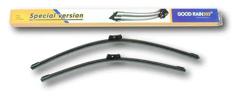 Nowe wycieraczki ; zapakowane woryginalne opakowanie producenta. Cena zakupu dotyczy 1kompletu (stronakierowcy i pasażera).Wycieraczki Good Rain na przednią szybęsamochodu posiadają konstrukcję bezprzegubową. Guma w wycieraczkachpokryta jest specjalną powłoką, dzięki, której szyba jest bardzo dobrzeczyszczona. Na całej długości wycieraczki znajduje się spojler, któregozadaniem jest dociskanie jej do powierzchni szyby, nawet przy dużychprędkościach. Duży wpływ na dobre przyleganie wycieraczek do szyby samochodu marównież zastosowana w ich konstrukcji specjalna prowadnica, dzięki, której siłanacisku jest regularnie rozłożona na całej długości pióra wycieraczki. Stałynadzór nad procesem produkcji oraz wysokiej jakości produkty użytedo ich wykonania sprawiają , że wycieraczki te, profesjonalnie spisują się wkażdych warunkach atmosferycznych. Zalety wycieraczek Good Rain:- bardzo łatwy montażna ramiona- wysoka jakość za przystępną cenę- skuteczne wycieranie szyby- zmniejszenie szumu powietrza poprzez bardziejopływowy kształt- zaawansowana technologia i nowoczesnywyglądJak dbać o wycieraczki:- pamiętaj, aby dbać o gumę wycieraczkiusuwając z niej brud, owady itp., które osiadły podczas jej pracy (wykorzystaćmożna do tego łagodny detergent); zapominanie o usuwaniu zanieczyszczeń, możedoprowadzić do uszkodzenia gumy wycieraczki- nigdy nie używaj wycieraczek, gdyszyba jest sucha; tarcie gumy po suchej szybie może doprowadzić doszybkiego jej zużycia- jeżeli wycieraczka na szybiepodskakuje, może to być oznaką, że ramię wycieraczki jest skrzywione; w takimprzypadku należy dokonać jego regulacji- jeżeli planujesz pozostawieniesamochodu na słońcu przez kilka dni, ustaw wycieraczki tak, aby niestykały się z szybą- po wizycie na myjni, pamiętaj, abyzawsze dokładnie oczyścić szybę, ponieważ znajdujący się na niej wosk, możepowodować przeskakiwanie wycieraczki- pamiętaj również,aby nie uruchamiać wycieraczek na zamarzniętej szybie; może to bowiemdoprowadzić do ich uszkodzenia lub oderwania gumy od mocowania.