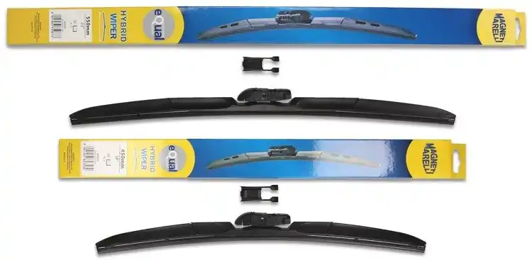 Wycieraczki są nowe – w oryginalnym opakowaniu producenta – cena zakupu dotyczy 1-kompletu (odpowiednio dobrane długości i modele wycieraczek – strona kierowcy oraz pasażera). Wycieraczki hybrydowe Magneti Marelli wyprodukowane są z materiałów o najwyższej jakości:- guma – to ponad 50% kauczuku naturalnego z grafitową powłoką. Wewnątrz gumy znajduje się podwójna stal nierdzewna. Sztywne gumowe pióro z grafitową powłoką w wycieraczkach hybrydowych Magneti Marelli to skuteczne i dokładne wycieranie powierzchni szyby.- Spojler – materiał ABS- Złącze – materiał POMWycieraczki hybrydowe Magneti Marelli dzięki zastosowaniu materiałów najwyższej jakości oraz zaawansowanej technologii, bez problemu zastępują tradycyjne wycieraczki w starszych modelach samochodów. Wymiana wycieraczek jest łatwa i szybka.Wysokiej jakości materiał użyty w wycieraczkach hybrydowych Magneti Marelli sprawia, że są wytrzymałe, dobrze dopasowują się do powierzchni szyby, dzięki czemu ich praca jest cicha. Sprawdzają się również w niekorzystnych warunkach atmosferycznych; temperatura od – 25ºC do + 50ºC w żaden sposób nie zakłóca ich pracy.Wycieraczki hybrydowe Magneti Marelli pasują do większości modeli samochodów dzięki zastosowaniu jednego uniwersalnego adaptera, który może być montowany w czterech różnych wycieraczkach.Wycieraczki Magneti Marelli to jedne z bardziej poszukiwanych wycieraczek na świecie.