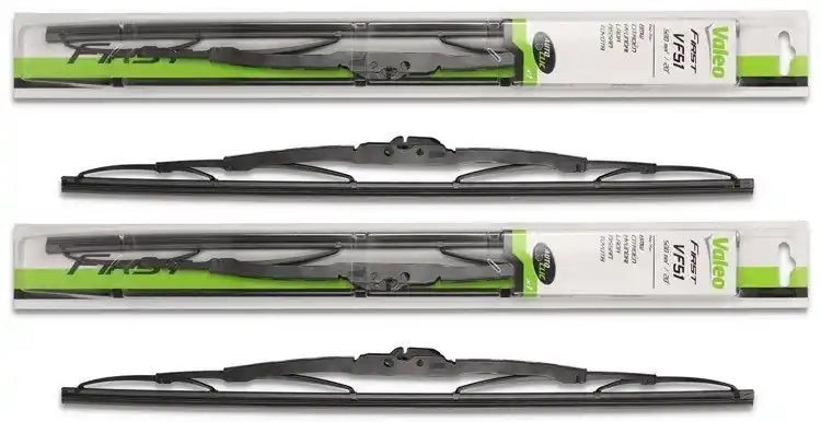 Nowe wycieraczki; zapakowane w oryginalne opakowanie producenta. Cena zakupu dotyczy 1kompletu (strona kierowcy i pasażera). Wycieraczki Valeo First to wycieraczki uniwersalne, przeznaczone na rynek części zamiennych. Są to wycieraczki dla klientów szukających dobrej jakości, w przystępnej cenie.Klienci poszukujący wycieraczek montowanych w autach z ramionami typu „U” mają do dyspozycji wycieraczki Valeo First szkieletowe, których konstrukcja jest w 100% metalowa. Aby efektywnie poprawić proces zbierania wody z powierzchni szyby, w gumie wycieraczki zastosowano specjalną mieszankę obrabianego kauczuku.Szybki i łatwy montaż wycieraczek Valeo First szkieletowych uzyskano dzięki fabrycznie zamontowanym adapterom. Zalety wycieraczek Valeo First:- dobra jakość- przystępna cena- szybki i łatwy montaż- zastosowanie w gumie wycieraczek naturalnego kauczuku- instrukcja montażu dostępna na opakowaniu Jak dbać o wycieraczki:- pamiętaj, aby dbać o gumę wycieraczki usuwając z niej brud, owady itp., które osiadły podczas jej pracy (wykorzystać można do tego łagodny detergent); zapominanie o usuwaniu zanieczyszczeń, może doprowadzić do uszkodzenia gumy wycieraczki- nigdy nie używaj wycieraczek, gdy szyba jest sucha;  tarcie gumy po suchej szybie może doprowadzić do szybkiego jej zużycia- jeżeli wycieraczka na szybie podskakuje, może to być oznaką, że ramię wycieraczki jest skrzywione; w takim przypadku należy dokonać jego regulacji- jeżeli planujesz pozostawienie samochodu  na słońcu przez kilka dni, ustaw wycieraczki tak, aby nie stykały się z szybą- po wizycie na myjni, pamiętaj, aby zawsze dokładnie oczyścić szybę, ponieważ znajdujący się na niej wosk, może powodować przeskakiwanie wycieraczki- pamiętaj również, aby nie uruchamiać wycieraczek na zamarzniętej szybie, może to bowiem doprowadzić do ich uszkodzenia lub oderwania gumy od mocowania.