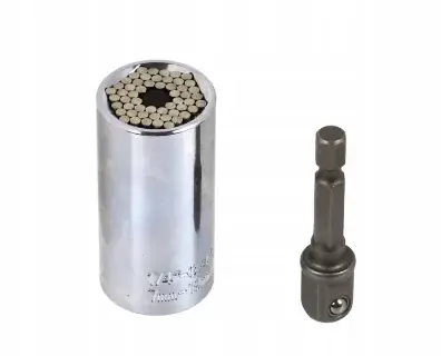 Nasadka uniwersalna, która złatwością dopasowuje się do różnych kształtów. Za jej pomocą odkręcisz m.in: -śruby ogwincie kwadratowym -śruby ogwinciesześciokątnym -śruby oczkowe -nakrętki motylki -haczyki Nasadkę zaprojektowano wtaki sposób, aby dopasowała się automatycznie do każdej nakrętki lub śruby orozmiarach od 7 do 19 mm (1/4″ do 3/4″). W zestawie adapter 3/8″ 50 mm na wiertarkę. Zakres pracy: 7 – 19 mm Mocowanie: trzpień 3/8″ Długość całkowita: 52 mm Materiał wykonania: stal stopowa chromowo-wanadowa (CrV)