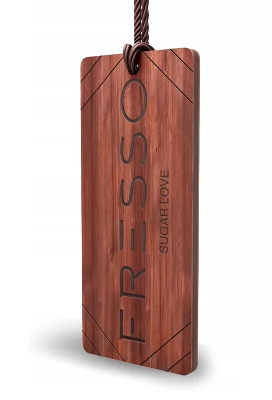 Elegancka, drewniana zawieszka zapachowa wzbogacona wbrązowy sznurek to wyszukany dodatek, który będzie znakomicie pasował do każdego wnętrza. samochodu. Unikalna receptura produktów opiera się na cennych składnikach, poddanych silnej koncentracji. Zalety: Finezyjna woń utrzymuje się nawet do 30 dni. Sensualne nuty zapachowe zawieszek Fresso uwalniane są wsposób ciągły ikontrolowany. Wyeliminowany nagły, zbyt intensywny wyrzut zapachu, dlatego pozostaje on stabilny przezprawie cały okres dedykowany do użytkowania zawieszki. Zapach: Sugar Love – Słodkie połączenie egzotycznego drzewa sandałowego znutami wanilii imigdałów. Wytrzymałość: około 30 dni.