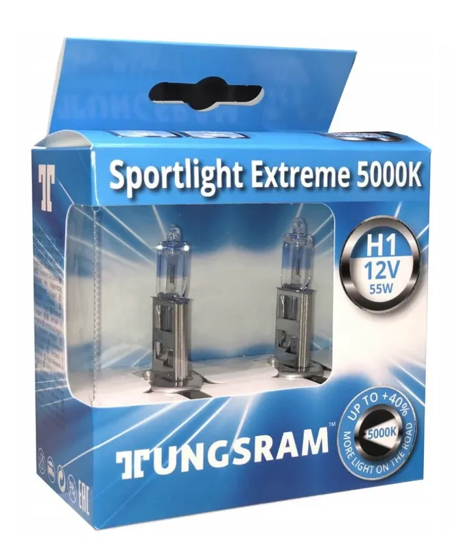 Komplet zawiera 2 szt. żarówek H1 Żarówki halogenowe H1 Sportlight Extreme marki Tungsram produkują o40% więcej światła wporównaniu ze zwykłymi żarówkami dostępnymi na rynku. Jest ono jasne ibiałe, posiada temperaturę barwową do 5000K. Dodatkowo, produkty Sportlight Extreme oferują stylowy niebieski efekt wreflektorach, wizualnie zbliżony do ksenonowego. Wcelu uzyskania symetrycznej wydajności świetlnej zaleca się zawsze wymieniać obie żarówki parami. Zalety: O 40% zwiększenie iluminacji obszaru oświetlonego Maksymalne bezpieczeństwo wwyniku osiągnięcia najwyższej skuteczności świetlnej Komfortowa iprzyjemna jazda nawet wnocy, dzięki Tungsram SPORTLIGHT EXTREME up to 5000K odczytywanie znaków drogowych staje się znacznie łatwiejsze iszybsze Wytwarza więcej światła na drodze poprzez zastosowanie precyzyjnie wykonanego żarnika , zastosowanie specjalnego pokrycia bańki żarówki orazwypełnienia jej ksenonem, daje bielszą barwę światła, Zastosowanie : Światła drogowe. Mijania. Przeciwmgielne. Specyfikacja: Moc : 55W Typ : H1 Trzonek : P14,5s Technologia : Halogen Seria : SPORTLIGHT EXTREME 5000K Napięcie zasilania : 12V Homologacja – TAK (E1) Producent: Tungsram Barwa: Do 5000K Zaleca się zawsze wymieniać obie żarówki jednocześnie.
