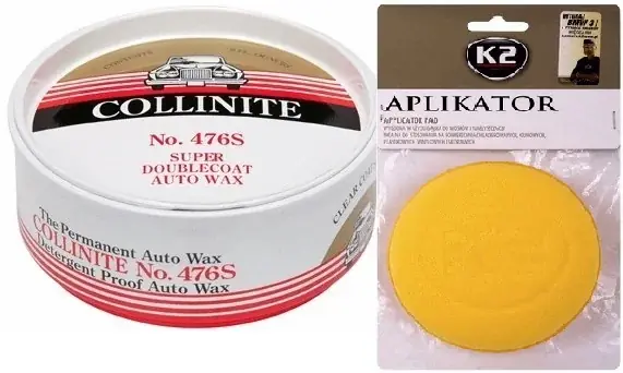 Collinite 476s to jeden znajtrwalszych wosków samochodowych na rynku. Łatwa aplikacja orazścieranie, to jego główne zalety. Produkt ten gwarantuje głębię koloru ipiękny połysk, szczególnie na ciemnych lakierach. Collinite 476s bazuje na brazylijskim wosku Carnauba pozyskiwanym zliści palmy Copernicia cerifera. Doświadczenia zbierane przezfirmę Collinite od roku 1936 sprawiły, że 476s to niepięknie wyglądające opakowanie, czyteż silne substancje zapachowe zachęcające do zakupu. Tu liczy się przede wszystkim niepowtarzalny blask orazwytrzymałość, której mogą mu pozazdrościć nawet produkty za kilka tysięcy złotych. 476s jest odporny na sól idetergenty. Jest to idealne rozwiązanie na ciężkie zimowe warunki. Jest to jeden znielicznych wosków najwyższej klasy, który niewymaga zakupu szamponu oneutralnym pH. K2 APLIKATOR GĄBKA DO WOSKÓW Wygodna wużyciu gąbka do wosków inabłyszczaczy idealna do stosowania na powierzchniach lakierowanych, gumowych, plastikowych, winylowych iskórzanych. Idealna do nakładania wosków inabłyszczaczy oróżnej konsystencji. Wymiary aplikatora: – średnica 10cm – grubość 2cm