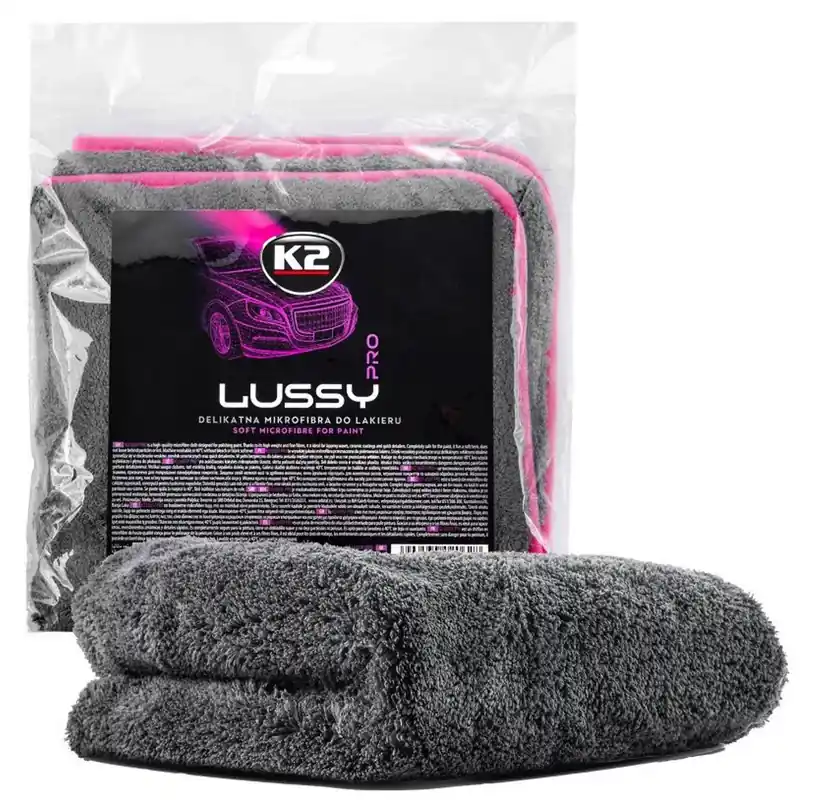 K2 LUSSY PRO to wyjątkowo miękka mikrofibra stworzona zmyślą operfekcyjnym wykończeniu lakieru. Jej gęste, puszyste włókna ogramaturze 1200 gsm zapewniają najwyższy poziom delikatności, niepozostawiając smug, włókien ani ryzyka zarysowania powierzchni. Ta mikrofibra została zaprojektowana specjalnie do polerowania, docierania wosków, powłok ceramicznych orazquick detailerów. Dzięki zwartej strukturze włókien doskonale chłonie produkty irównomiernie je rozprowadza, przywracając lakierowi głębię koloru orazefekt lustrzanego połysku. Kluczowe właściwości izalety Ekstragruba struktura 1200 gsm – wyjątkowa chłonność imiękkość dlamaksymalnej ochrony lakieru. Bezpieczna dlawszystkich powierzchni lakierowanych – miękkie obszycie eliminuje ryzyko mikrorys. Idealna do detailingu – doskonała do wosków, quick detailerów ipowłok ceramicznych. Nie pyli, niezostawia włókien – zapewnia czyste, gładkie ibłyszczące wykończenie. Trwała iwielokrotnego użytku – nadaje się do prania mechanicznego (do 40°C, bez płynu do płukania iwybielaczy). Poręczny rozmiar 40×40 cm – idealna do pracy zarówno wstudiu detailingu, jak iwdomowym garażu. Dane techniczne Rozmiar: 40 × 40 cm Gramatura: 1200 gsm Skład: 80% poliester, 20% poliamid Kolor: szaro-żółty (charakterystyczny dlaserii K2 PRO) Zastosowanie Docieranie wosków ipowłok ochronnych Polerowanie lakieru po aplikacji quick detailerów Finalne wykończenie detailingu inadawanie połysku Czyszczenie ipielęgnacja elementów zewnętrznych bez ryzyka mikrorys Dlaczego warto wybrać K2 LUSSY PRO? Profesjonalna jakość dlanajbardziej wymagających detailerów Najwyższy poziom delikatności ibezpieczeństwa dlalakieru Wysoka chłonność itrwałość nawet po wielu praniach Produkt renomowanej marki K2, cenionej wbranży autodetailingu