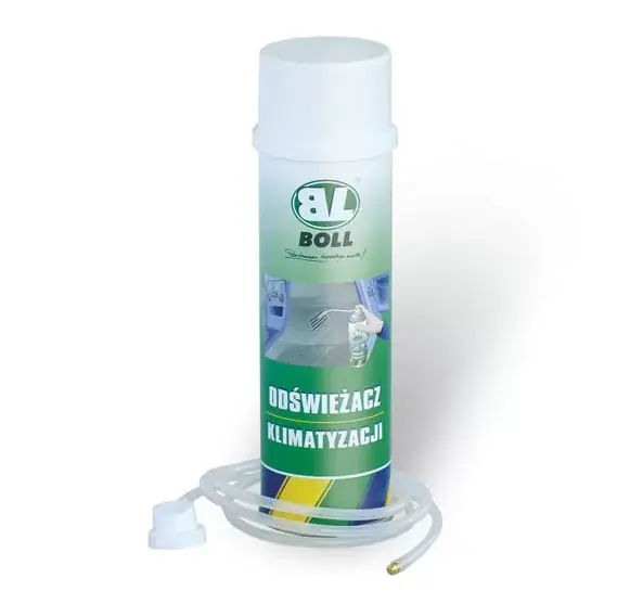 Specjalny środek odświeżający układ klimatyzacji wpojazdach samochodowych. Usuwa powstające wukładzie bakterie, roztocza igrzyby eliminując wten sposób nieprzyjemny zapach występujący podczas pracy układu wentylacyjnego. Produkt okonsystencji pianki orazświeżym, cytrynowym zapachu. Dołączona końcówka odługości 60 cm umożliwia dokładną aplikację. Nazwa: BOLL ODŚWIEŻACZ KLIMATYZACJI – 200ML – pianka do odgrzybiania klimatyzacji, – zapach cytrusowy. Kod:001043 Odświeżacz klimatyzacji jest specjalnym środkiem waerozolu odświeżającym układ klimatyzacji wpojazdach samochodowych. Nie zawiera alkoholu etylowego. Usuwa powstające wukładzie bakterie, roztocza igrzyby eliminując wten sposób nieprzyjemny zapach występujący podczas pracy układu nawiewów. Sposób użycia: Pojemnik przed użyciem silnie wstrząsnąć przezok. 3 min. Podczas użycia trzymać pojemnik wpozycji pionowej. Ustawić przepływ powietrza jedynie przezotwory wentylacyjne na środku deski rozdzielczej. Włączyć tryb “recyrkulacja powietrza”, maksymalny nawiew inajniższą temperaturę. Wyłączyć klimatyzację. Wtryskiwać produkt bezpośrednio do wewnętrznego otworu wlotowego umieszczonego wdolnej części przeznaczonej na nogi stosując długie impulsy ażpuszka będzie pusta. Zużyć całą zawartość puszki. Wyłączyć iodczekać 10 minut przed włączeniem klimatyzacji.