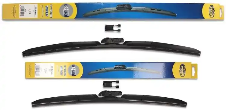 Wycieraczki są nowe – w oryginalnym opakowaniu producenta – cena zakupu dotyczy 1-kompletu (odpowiednio dobrane długości i modele wycieraczek – strona kierowcy oraz pasażera). Wycieraczki hybrydowe Magneti Marelli wyprodukowane są z materiałów o najwyższej jakości:- guma – to ponad 50% kauczuku naturalnego z grafitową powłoką. Wewnątrz gumy znajduje się podwójna stal nierdzewna. Sztywne gumowe pióro z grafitową powłoką w wycieraczkach hybrydowych Magneti Marelli to skuteczne i dokładne wycieranie powierzchni szyby.- Spojler – materiał ABS- Złącze – materiał POMWycieraczki hybrydowe Magneti Marelli dzięki zastosowaniu materiałów najwyższej jakości oraz zaawansowanej technologii, bez problemu zastępują tradycyjne wycieraczki. Wymiana wycieraczek jest łatwa i szybka.Wysokiej jakości materiał użyty w wycieraczkach hybrydowych Magneti Marelli sprawia, że są wytrzymałe, dobrze dopasowują się do powierzchni szyby, dzięki czemu ich praca jest cicha. Sprawdzają się również w niekorzystnych warunkach atmosferycznych; temperatura od – 25ºC do + 50ºC w żaden sposób nie zakłóca ich pracy.Wycieraczki hybrydowe Magneti Marelli pasują do większości modeli samochodów dzięki zastosowaniu jednego uniwersalnego adaptera, który może być montowany w czterech różnych wycieraczkach.Wycieraczki Magneti Marelli to jedne z bardziej poszukiwanych wycieraczek na świecie.
