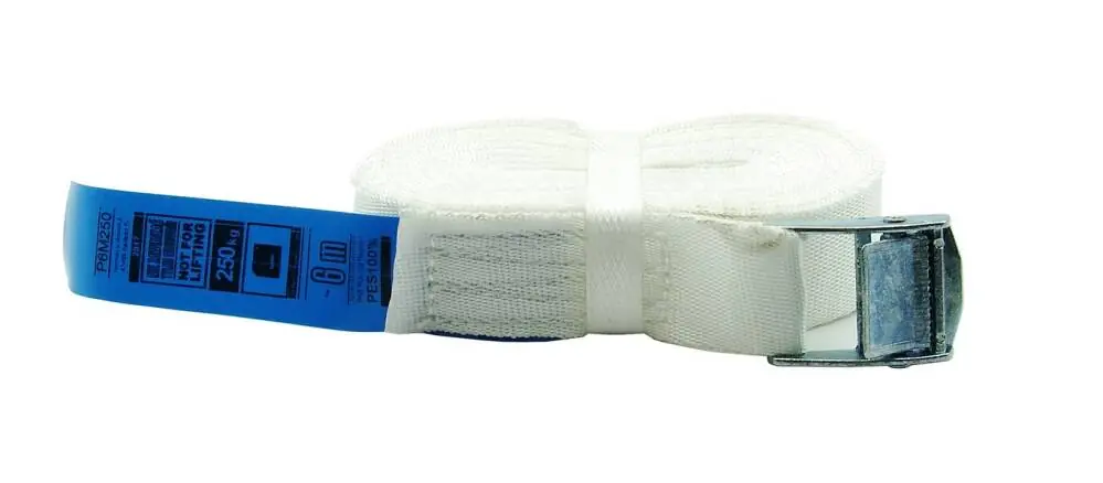 Opis produktu i zastosowaniePas ściągający z klamrą zaciskową o szerokości 25mm i wytrzymałości 250 kg. Idealnie nadaje się mocowania i spinania bagaży i zabezpieczania podczas transportu lekkich ładunków na pojazdach, przyczepach, lawetach.