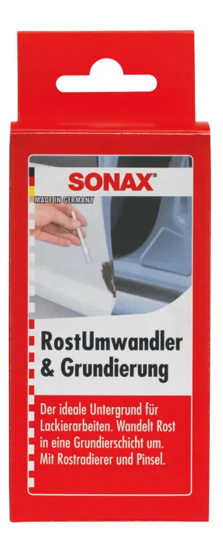 Opis produktu i zastosowanieZmienia rdzę w nieaktywną, bardzo dobrze przywierającą i odporną powłokę ochronną tworząc idealny podkład do dalszych prac lakierniczych. Oczyszcza z rdzy żelazo, stal i wszelkie inne elementy metalowe. W zestawie znajduje się skrobak do usuwania rdzy, twardy pędzelek do oczyszczania zardzewiałych powierzchni i miękki pędzelek do nakładania preparatu.