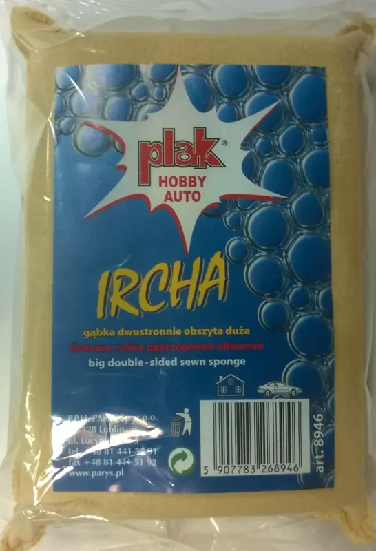 ATAS IRCHA GĄBKA DWUSTRONNIE OBSZYTA DUŻA Ircha miękka iłatwo wchłaniająca wilgoć. Osusza niepozostawiając plam. Do wielokrotnego użycia. ART: 8953