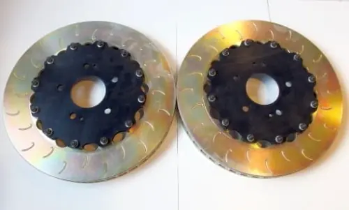 Tarcze 2-częściowe do: Mitsubishi Lancer Evo 10 350×32 Zestaw tarcz hamulcowych dwuczęściowych naszej produkcji PIZZABRAKES. Tarcze sportowe o podwyższonej jakości i odporności. Tarcze cynkowane, odporne na korozję i wysokie temperatury. Tarcze w wersji nacinanej cechuje poprawiona skuteczność odprowadzania gazów, lepsze chłodzenie hamulców oraz zapobiega tzw. szkleniu się klocka hamulcowego.Tarcze 2-częsciowe są sportowym zamiennikiem dla tarcz seryjnych jednoczęsciowych. W porównaniu do 1-częściowych cechują się lepszym odprowadzaniem ciepła oraz niższą wagą. Po zużyciu tarczy wymienia się jedynie rotor – bez dzwonów. Wszystkie tarcze hamulcowe są zabezpieczone antykorozyjnie warstwą cynku nadając im charakterystyczny złoty kolor. Tarcze dwuczęściowe skręcane (sztywne – nie pływające!) Pasują do Mitsubishi Lancer EVO 10 (X) na przednią oś – jest to zamiennik tarcz seryjnych. Silniki: 2.0 Turbo Wymiary: średnica 350mm grubość max/min 32/30mm otwór centralny: 69mm wysokość: 43,7mm rozstaw: 5 x 114,3mm waga: 8kg (dla porównania seryjna tarcza waży 11kg – ponad 6kg redukcji wagi na masie nieresorowanej!) UWAGA: Do zastosowania tej tarczy w seryjnym EVO X należy wymienić klocki hamulcowe na model FERODO FCP1281 – pomożemy w doborze mieszanek lub dobraniu modelu u innego producenta. Uprzedzając pytania – ten model klocka z ferodo ds2500 jest tańszy niż model seryjny FCP1334! TARCZE NACINANE! Podana cena jest za komplet tarcz na przednią oś gotowych do montażu (2 sztuki, skręcone, rotory, śruby, nakrętki, podkładki i dzwony). Istnieje także możliwość zamówienia tych tarcz z systemem pływającym AP Racing – w tej sprawie prosimy o kontakt. Przed zakupem prosimy o kontakt w celu odpowiedniego dobrania tarcz do Państwa samochodu oraz w celu sprawdzenia czasu realizacji.