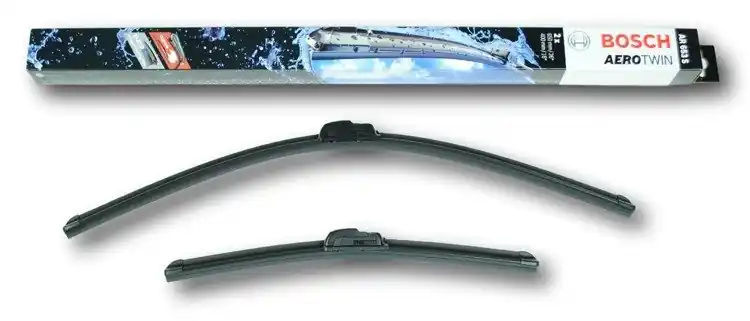 Nowe wycieraczki – zapakowane w oryginalne opakowanie producenta – cena zakupu dotyczy 1kompletu (strona kierowcy i pasażera).Wycieraczki Bosch Aerotwin posiadają konstrukcję aerodynamiczną i nie mają klasycznych przegubów. W ich wnętrzu znajduje się specjalna szyna stabilizująca Evodium, która odpowiada za przyleganie do szyby i sztywność wycieraczki. Do konstrukcji pióra wycieraczki zastosowano 2 rodzaje gumy. Na górze znajduje się część miękka odpowiadająca za cichą pracę, natomiast na dole twarda, która ma za zadanie precyzyjne czyszczenie szyby ze śniegu, wody itp. Dodatkowo pokryta jest specjalną powłoką, powodującą lepszy poślizg na szybie, aby siła tarcia była jak najmniejsza. Wycieraczki Bosch Aerotwin spełniają swoją rolę nawet przy dużych prędkościach dzięki spojlerowi wbudowanemu na całej długości wycieraczki, który sprawia, że pęd powietrza dociska wycieraczkę do szyby.Zalety wycieraczek Bosch Aerotwin:- bardzo łatwy montaż na ramiona typu „U”- precyzyjne wycieranie szyby- zmniejszenie szumu powietrza poprzez bardziej opływowy kształt- nie zamarzanie zimą poszczególnych elementów wycieraczki dzięki zastosowaniu wewnętrznej szyny Evodium- nowoczesny wygląd- spojler wmontowany na całej długości, poprawiający przyleganie wycieraczki do szyby przy dużych prędkościach.Jak dbać o wycieraczki:- pamiętaj, aby dbać o gumę wycieraczki usuwając z niej brud, owady itp., które osiadły podczas jej pracy (wykorzystać można do tego łagodny detergent); zapominanie o usuwaniu zanieczyszczeń, może doprowadzić do uszkodzenia gumy wycieraczki- nigdy nie używaj wycieraczek, gdy szyba jest sucha;  tarcie gumy po suchej szybie może doprowadzić do szybkiego jej zużycia- jeżeli wycieraczka na szybie podskakuje, może to być oznaką, że ramię wycieraczki jest skrzywione; w takim przypadku należy dokonać jego regulacji- jeżeli planujesz pozostawienie samochodu na słońcu przez kilka dni, ustaw wycieraczki tak, aby nie stykały się z szybą- po wizycie na myjni, pamiętaj, aby zawsze dokładnie oczyścić szybę, ponieważ znajdujący się na niej wosk, może powodować przeskakiwanie wycieraczki- pamiętaj również, aby nie uruchamiać wycieraczek na zamarzniętej szybie; może to bowiem doprowadzić do ich uszkodzenia lub oderwania gumy od mocowania.Czy wiesz że:- pierwsza wycieraczka wprowadzona została przez Boscha w okresie międzywojennym w 1926r. i napędzana była silnikiem elektrycznym- pierwszą wycieraczkę bezprzegubową – Bosch wprowadził do produkcji w 1999r.- 750 000 cykli oczyszczania! Tak wycieraczki Bosch są testowane pod kątem wytrzymałości mechanicznej- wycieraczki Bosch są przystosowane do pracy w temperaturach od -30 do +80 stopni Celsjusza.