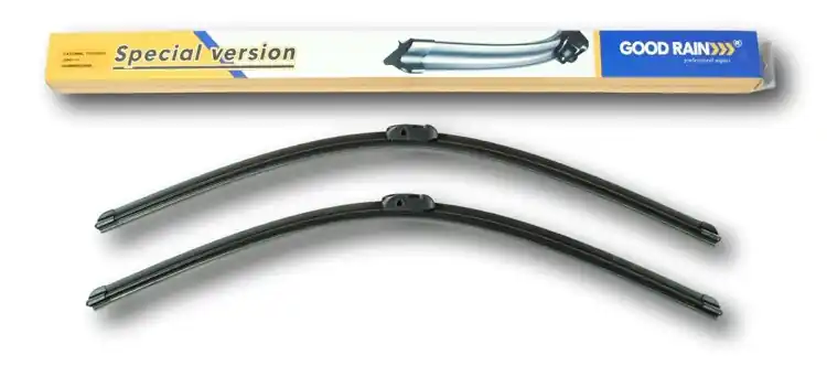Nowe wycieraczki ; zapakowane woryginalne opakowanie producenta. Cena zakupu dotyczy 1kompletu (stronakierowcy i pasażera).Wycieraczki Good Rain na przednią szybęsamochodu posiadają konstrukcję bezprzegubową. Guma w wycieraczkachpokryta jest specjalną powłoką, dzięki, której szyba jest bardzo dobrzeczyszczona. Na całej długości wycieraczki znajduje się spojler, któregozadaniem jest dociskanie jej do powierzchni szyby, nawet przy dużychprędkościach. Duży wpływ na dobre przyleganie wycieraczek do szyby samochodu marównież zastosowana w ich konstrukcji specjalna prowadnica, dzięki, której siłanacisku jest regularnie rozłożona na całej długości pióra wycieraczki. Stałynadzór nad procesem produkcji oraz wysokiej jakości produkty użytedo ich wykonania sprawiają , że wycieraczki te, profesjonalnie spisują się wkażdych warunkach atmosferycznych. Zalety wycieraczek Good Rain:- bardzo łatwy montażna ramiona- wysoka jakość za przystępną cenę- skuteczne wycieranie szyby- zmniejszenie szumu powietrza poprzez bardziejopływowy kształt- zaawansowana technologia i nowoczesnywyglądJak dbać o wycieraczki:- pamiętaj, aby dbać o gumę wycieraczkiusuwając z niej brud, owady itp., które osiadły podczas jej pracy (wykorzystaćmożna do tego łagodny detergent); zapominanie o usuwaniu zanieczyszczeń, możedoprowadzić do uszkodzenia gumy wycieraczki- nigdy nie używaj wycieraczek, gdyszyba jest sucha; tarcie gumy po suchej szybie może doprowadzić doszybkiego jej zużycia- jeżeli wycieraczka na szybiepodskakuje, może to być oznaką, że ramię wycieraczki jest skrzywione; w takimprzypadku należy dokonać jego regulacji- jeżeli planujesz pozostawieniesamochodu na słońcu przez kilka dni, ustaw wycieraczki tak, aby niestykały się z szybą- po wizycie na myjni, pamiętaj, abyzawsze dokładnie oczyścić szybę, ponieważ znajdujący się na niej wosk, możepowodować przeskakiwanie wycieraczki- pamiętaj również,aby nie uruchamiać wycieraczek na zamarzniętej szybie; może to bowiemdoprowadzić do ich uszkodzenia lub oderwania gumy od mocowania.