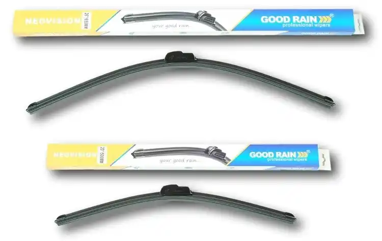 Nowe wycieraczki ;  zapakowane woryginalne opakowanie producenta. Cena zakupu dotyczy 1kompletu (stronakierowcy i pasażera).Wycieraczki Good Rain na przednią szybęsamochodu posiadają  konstrukcję bezprzegubową. Guma w wycieraczkachpokryta jest specjalną powłoką, dzięki, której szyba jest bardzo dobrzeczyszczona. Na całej długości wycieraczki znajduje się spojler, któregozadaniem jest dociskanie jej do powierzchni szyby, nawet przy dużychprędkościach. Duży wpływ na dobre przyleganie wycieraczek do szyby samochodu marównież zastosowana w ich konstrukcji specjalna prowadnica, dzięki, której siłanacisku jest  regularnie rozłożona na całej długości pióra wycieraczki. Stałynadzór nad  procesem  produkcji oraz wysokiej jakości produkty użytedo ich wykonania sprawiają , że wycieraczki te, profesjonalnie spisują się wkażdych warunkach atmosferycznych.   Zalety wycieraczek Good Rain:- bardzo łatwy montażna ramiona- wysoka jakość za przystępną cenę- skuteczne wycieranie szyby- zmniejszenie szumu powietrza poprzez bardziejopływowy kształt- zaawansowana technologia i nowoczesnywyglądJak dbać o wycieraczki:- pamiętaj, aby dbać o gumę wycieraczkiusuwając z niej brud, owady itp., które osiadły podczas jej pracy (wykorzystaćmożna do tego łagodny detergent); zapominanie o usuwaniu zanieczyszczeń, możedoprowadzić do uszkodzenia gumy wycieraczki- nigdy nie używaj wycieraczek, gdyszyba jest sucha;  tarcie gumy po suchej szybie może doprowadzić doszybkiego jej zużycia- jeżeli wycieraczka na szybiepodskakuje, może to być oznaką, że ramię wycieraczki jest skrzywione; w takimprzypadku należy dokonać jego regulacji- jeżeli planujesz pozostawieniesamochodu  na słońcu przez kilka dni, ustaw wycieraczki tak, aby niestykały się z szybą- po wizycie na myjni, pamiętaj, abyzawsze dokładnie oczyścić szybę, ponieważ znajdujący się na niej wosk, możepowodować przeskakiwanie wycieraczki- pamiętaj również,aby nie uruchamiać wycieraczek  na zamarzniętej szybie; może to bowiemdoprowadzić do ich uszkodzenia lub oderwania gumy od mocowania.