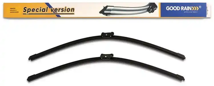 Nowe wycieraczki ;  zapakowane w oryginalne opakowanie producenta. Cena zakupu dotyczy 1kompletu (strona kierowcy i pasażera).Wycieraczki Good Rain na przednią szybęsamochodu posiadają  konstrukcję bezprzegubową. Guma w wycieraczkachpokryta jest specjalną powłoką, dzięki, której szyba jest bardzo dobrzeczyszczona. Na całej długości wycieraczki znajduje się spojler, któregozadaniem jest dociskanie jej do powierzchni szyby, nawet przy dużychprędkościach. Duży wpływ na dobre przyleganie wycieraczek do szyby samochodu marównież zastosowana w ich konstrukcji specjalna prowadnica, dzięki, której siłanacisku jest  regularnie rozłożona na całej długości pióra wycieraczki. Stałynadzór nad  procesem  produkcji oraz wysokiej jakości produkty użytedo ich wykonania sprawiają , że wycieraczki te, profesjonalnie spisują się wkażdych warunkach atmosferycznych.   Zalety wycieraczek Good Rain:- bardzo łatwy montażna ramiona- wysoka jakość za przystępną cenę- skuteczne wycieranie szyby- zmniejszenie szumu powietrza poprzez bardziejopływowy kształt- zaawansowana technologia i nowoczesnywyglądJak dbać o wycieraczki:- pamiętaj, aby dbać o gumę wycieraczkiusuwając z niej brud, owady itp., które osiadły podczas jej pracy (wykorzystaćmożna do tego łagodny detergent); zapominanie o usuwaniu zanieczyszczeń, możedoprowadzić do uszkodzenia gumy wycieraczki- nigdy nie używaj wycieraczek, gdyszyba jest sucha;  tarcie gumy po suchej szybie może doprowadzić doszybkiego jej zużycia- jeżeli wycieraczka na szybiepodskakuje, może to być oznaką, że ramię wycieraczki jest skrzywione; w takimprzypadku należy dokonać jego regulacji- jeżeli planujesz pozostawieniesamochodu  na słońcu przez kilka dni, ustaw wycieraczki tak, aby niestykały się z szybą- po wizycie na myjni, pamiętaj, abyzawsze dokładnie oczyścić szybę, ponieważ znajdujący się na niej wosk, możepowodować przeskakiwanie wycieraczki- pamiętaj również,aby nie uruchamiać wycieraczek  na zamarzniętej szybie; może to bowiemdoprowadzić do ich uszkodzenia lub oderwania gumy od mocowania.