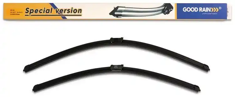 Nowe wycieraczki ; zapakowane woryginalne opakowanie producenta. Cena zakupu dotyczy 1kompletu (stronakierowcy i pasażera).Wycieraczki Good Rain na przednią szybęsamochodu posiadają konstrukcję bezprzegubową. Guma w wycieraczkachpokryta jest specjalną powłoką, dzięki, której szyba jest bardzo dobrzeczyszczona. Na całej długości wycieraczki znajduje się spojler, któregozadaniem jest dociskanie jej do powierzchni szyby, nawet przy dużychprędkościach. Duży wpływ na dobre przyleganie wycieraczek do szyby samochodu marównież zastosowana w ich konstrukcji specjalna prowadnica, dzięki, której siłanacisku jest regularnie rozłożona na całej długości pióra wycieraczki. Stałynadzór nad procesem produkcji oraz wysokiej jakości produkty użytedo ich wykonania sprawiają , że wycieraczki te, profesjonalnie spisują się wkażdych warunkach atmosferycznych. Zalety wycieraczek Good Rain:- bardzo łatwy montażna ramiona- wysoka jakość za przystępną cenę- skuteczne wycieranie szyby- zmniejszenie szumu powietrza poprzez bardziejopływowy kształt- zaawansowana technologia i nowoczesnywyglądJak dbać o wycieraczki:- pamiętaj, aby dbać o gumę wycieraczkiusuwając z niej brud, owady itp., które osiadły podczas jej pracy (wykorzystaćmożna do tego łagodny detergent); zapominanie o usuwaniu zanieczyszczeń, możedoprowadzić do uszkodzenia gumy wycieraczki- nigdy nie używaj wycieraczek, gdyszyba jest sucha; tarcie gumy po suchej szybie może doprowadzić doszybkiego jej zużycia- jeżeli wycieraczka na szybiepodskakuje, może to być oznaką, że ramię wycieraczki jest skrzywione; w takimprzypadku należy dokonać jego regulacji- jeżeli planujesz pozostawieniesamochodu na słońcu przez kilka dni, ustaw wycieraczki tak, aby niestykały się z szybą- po wizycie na myjni, pamiętaj, abyzawsze dokładnie oczyścić szybę, ponieważ znajdujący się na niej wosk, możepowodować przeskakiwanie wycieraczki- pamiętaj również,aby nie uruchamiać wycieraczek na zamarzniętej szybie; może to bowiemdoprowadzić do ich uszkodzenia lub oderwania gumy od mocowania.