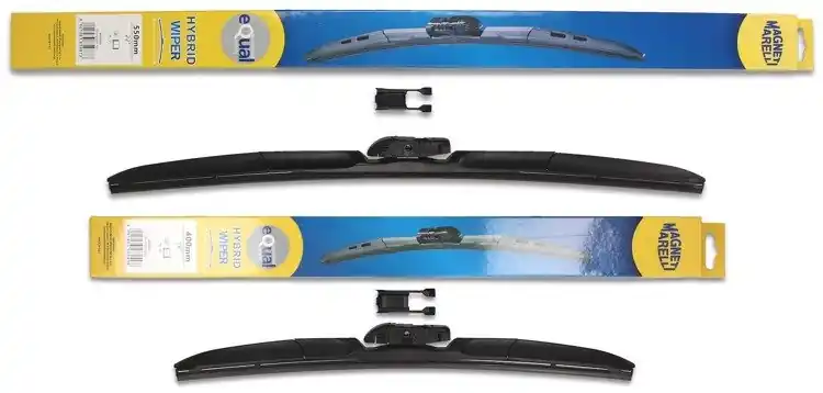Wycieraczki są nowe – w oryginalnym opakowaniu producenta – cena zakupu dotyczy 1-kompletu (odpowiednio dobrane długości i modele wycieraczek – strona kierowcy oraz pasażera). Wycieraczki hybrydowe Magneti Marelli wyprodukowane są z materiałów o najwyższej jakości:- guma – to ponad 50% kauczuku naturalnego z grafitową powłoką. Wewnątrz gumy znajduje się podwójna stal nierdzewna. Sztywne gumowe pióro z grafitową powłoką w wycieraczkach hybrydowych Magneti Marelli to skuteczne i dokładne wycieranie powierzchni szyby.- Spojler – materiał ABS- Złącze – materiał POMWycieraczki hybrydowe Magneti Marelli dzięki zastosowaniu materiałów najwyższej jakości oraz zaawansowanej technologii, bez problemu zastępują tradycyjne wycieraczki w starszych modelach samochodów. Wymiana wycieraczek jest łatwa i szybka.Wysokiej jakości materiał użyty w wycieraczkach hybrydowych Magneti Marelli sprawia, że są wytrzymałe, dobrze dopasowują się do powierzchni szyby, dzięki czemu ich praca jest cicha. Sprawdzają się również w niekorzystnych warunkach atmosferycznych; temperatura od – 25ºC do + 50ºC w żaden sposób nie zakłóca ich pracy.Wycieraczki hybrydowe Magneti Marelli pasują do większości modeli samochodów dzięki zastosowaniu jednego uniwersalnego adaptera, który może być montowany w czterech różnych wycieraczkach.Wycieraczki Magneti Marelli to jedne z bardziej poszukiwanych wycieraczek na świecie.