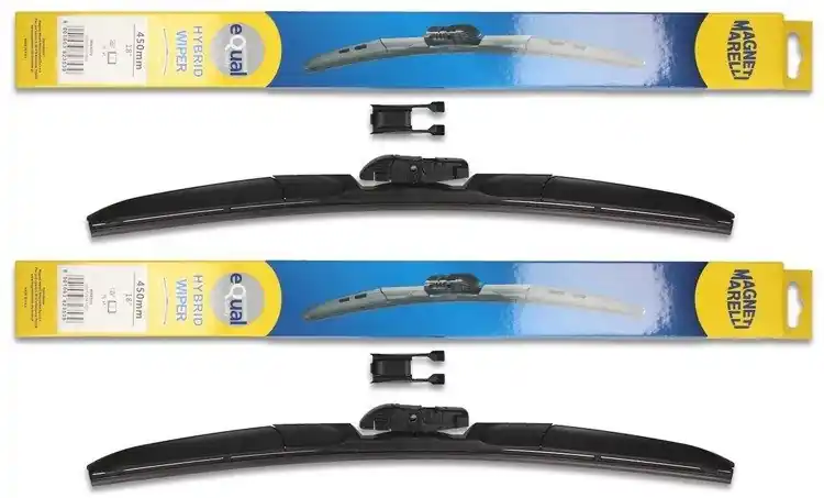 Wycieraczki są nowe – w oryginalnym opakowaniu producenta – cena zakupu dotyczy 1-kompletu (odpowiednio dobrane długości i modele wycieraczek – strona kierowcy oraz pasażera). Wycieraczki hybrydowe Magneti Marelli wyprodukowane są z materiałów o najwyższej jakości:- guma – to ponad 50% kauczuku naturalnego z grafitową powłoką. Wewnątrz gumy znajduje się podwójna stal nierdzewna. Sztywne gumowe pióro z grafitową powłoką w wycieraczkach hybrydowych Magneti Marelli to skuteczne i dokładne wycieranie powierzchni szyby.- Spojler – materiał ABS- Złącze – materiał POMWycieraczki hybrydowe Magneti Marelli dzięki zastosowaniu materiałów najwyższej jakości oraz zaawansowanej technologii, bez problemu zastępują tradycyjne wycieraczki w starszych modelach samochodów. Wymiana wycieraczek jest łatwa i szybka.Wysokiej jakości materiał użyty w wycieraczkach hybrydowych Magneti Marelli sprawia, że są wytrzymałe, dobrze dopasowują się do powierzchni szyby, dzięki czemu ich praca jest cicha. Sprawdzają się również w niekorzystnych warunkach atmosferycznych; temperatura od – 25ºC do + 50ºC w żaden sposób nie zakłóca ich pracy.Wycieraczki hybrydowe Magneti Marelli pasują do większości modeli samochodów dzięki zastosowaniu jednego uniwersalnego adaptera, który może być montowany w czterech różnych wycieraczkach.Wycieraczki Magneti Marelli to jedne z bardziej poszukiwanych wycieraczek na świecie.