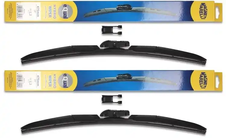 Wycieraczki są nowe – w oryginalnym opakowaniu producenta – cena zakupu dotyczy 1-kompletu (odpowiednio dobrane długości i modele wycieraczek – strona kierowcy oraz pasażera). Wycieraczki hybrydowe Magneti Marelli wyprodukowane są z materiałów o najwyższej jakości:- guma – to ponad 50% kauczuku naturalnego z grafitową powłoką. Wewnątrz gumy znajduje się podwójna stal nierdzewna. Sztywne gumowe pióro z grafitową powłoką w wycieraczkach hybrydowych Magneti Marelli to skuteczne i dokładne wycieranie powierzchni szyby.- Spojler – materiał ABS- Złącze – materiał POMWycieraczki hybrydowe Magneti Marelli dzięki zastosowaniu materiałów najwyższej jakości oraz zaawansowanej technologii, bez problemu zastępują tradycyjne wycieraczki w starszych modelach samochodów. Wymiana wycieraczek jest łatwa i szybka.Wysokiej jakości materiał użyty w wycieraczkach hybrydowych Magneti Marelli sprawia, że są wytrzymałe, dobrze dopasowują się do powierzchni szyby, dzięki czemu ich praca jest cicha. Sprawdzają się również w niekorzystnych warunkach atmosferycznych; temperatura od – 25ºC do + 50ºC w żaden sposób nie zakłóca ich pracy.Wycieraczki hybrydowe Magneti Marelli pasują do większości modeli samochodów dzięki zastosowaniu jednego uniwersalnego adaptera, który może być montowany w czterech różnych wycieraczkach.Wycieraczki Magneti Marelli to jedne z bardziej poszukiwanych wycieraczek na świecie.