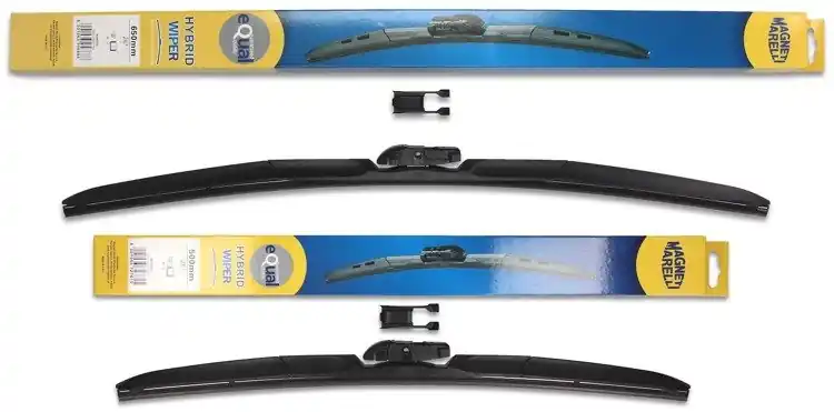 Wycieraczki są nowe – w oryginalnym opakowaniu producenta – cena zakupu dotyczy 1-kompletu (odpowiednio dobrane długości i modele wycieraczek – strona kierowcy oraz pasażera). Wycieraczki hybrydowe Magneti Marelli wyprodukowane są z materiałów o najwyższej jakości:- guma – to ponad 50% kauczuku naturalnego z grafitową powłoką. Wewnątrz gumy znajduje się podwójna stal nierdzewna. Sztywne gumowe pióro z grafitową powłoką w wycieraczkach hybrydowych Magneti Marelli to skuteczne i dokładne wycieranie powierzchni szyby.- Spojler – materiał ABS- Złącze – materiał POMWycieraczki hybrydowe Magneti Marelli dzięki zastosowaniu materiałów najwyższej jakości oraz zaawansowanej technologii, bez problemu zastępują tradycyjne wycieraczki. Wymiana wycieraczek jest łatwa i szybka.Wysokiej jakości materiał użyty w wycieraczkach hybrydowych Magneti Marelli sprawia, że są wytrzymałe, dobrze dopasowują się do powierzchni szyby, dzięki czemu ich praca jest cicha. Sprawdzają się również w niekorzystnych warunkach atmosferycznych; temperatura od – 25ºC do + 50ºC w żaden sposób nie zakłóca ich pracy.Wycieraczki hybrydowe Magneti Marelli pasują do większości modeli samochodów dzięki zastosowaniu jednego uniwersalnego adaptera, który może być montowany w czterech różnych wycieraczkach.Wycieraczki Magneti Marelli to jedne z bardziej poszukiwanych wycieraczek na świecie.
