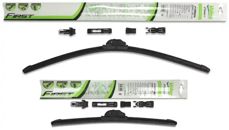 Nowe wycieraczki; zapakowane w oryginalne opakowanie producenta. Cena zakupu dotyczy 1kompletu (strona kierowcy i pasażera).Wycieraczki Valeo First Multiconnection to wysoka jakość i atrakcyjna cena.Bezszkieletowe wycieraczki Valeo First posiadają metalowe listwy, które zapewniają optymalny docisk do powierzchni szyby, a tym samym doskonałą widoczność nawet w niekorzystnych warunkach atmosferycznych.Gumowe pióra wycieraczek wykonane są ze specjalnej mieszanki obrabianego kauczuku, co znacznie poprawia skuteczność czyszczenia powierzchni szyby.Innowacyjny kształt spojlera w technologii „PYRAMID” zapewnia optymalny docisk do powierzchni szyby oraz cichą pracę nawet przy dużych prędkościach.Na opakowaniu wycieraczek First Multiconnection podany jest sposób ich montażu oraz przykładowa lista zastosowań.Wycieraczki First zostały zaprojektowane i wyprodukowane na całkowicie zautomatyzowanych liniach montażowych w nowych fabrykach Valeo.W opakowaniu wycieraczek First Multiconnection znajduje się kilka adapterów. Klient samodzielnie wybiera i montuje właściwy adapter. Zalety wycieraczek Valeo First Multiconnection:- bardzo łatwy montaż- precyzyjne wycieranie szyby- zmniejszenie szumu powietrza poprzez bardziej opływowy kształt- nie zamarzanie zimą poszczególnych elementów wycieraczki- nowoczesny wygląd- spojler na całej długości, poprawiający przyleganie wycieraczki do powierzchni szyby przy dużych  prędkościach.Jak dbać o wycieraczki:- pamiętaj, aby dbać o gumę wycieraczki usuwając z niej brud, owady itp., które osiadły podczas jej pracy (wykorzystać można do tego łagodny detergent); zapominanie o usuwaniu zanieczyszczeń, może doprowadzić do uszkodzenia gumy wycieraczki- nigdy nie używaj wycieraczek, gdy szyba jest sucha;  tarcie gumy po suchej szybie może doprowadzić do szybkiego jej zużycia- jeżeli wycieraczka na szybie podskakuje, może to być oznaką, że ramię wycieraczki jest skrzywione; w takim przypadku należy dokonać jego regulacji- jeżeli planujesz pozostawienie samochodu  na słońcu przez kilka dni, ustaw wycieraczki tak, aby nie stykały się z szybą- po wizycie na myjni, pamiętaj, aby zawsze dokładnie oczyścić szybę, ponieważ znajdujący się na niej wosk, może powodować przeskakiwanie wycieraczki- pamiętaj również, aby nie uruchamiać wycieraczek na zamarzniętej szybie; może to bowiem doprowadzić do ich uszkodzenia lub oderwania gumy od mocowania.