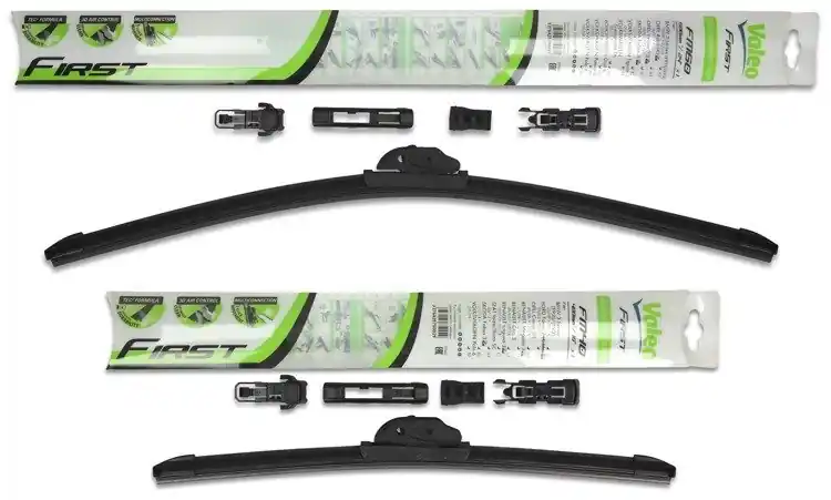 Nowe wycieraczki; zapakowane w oryginalne opakowanie producenta. Cena zakupu dotyczy 1kompletu (strona kierowcy i pasażera).Wycieraczki Valeo First Multiconnection to wysoka jakość i atrakcyjna cena.Bezszkieletowe wycieraczki Valeo First posiadają metalowe listwy, które zapewniają optymalny docisk do powierzchni szyby, a tym samym doskonałą widoczność nawet w niekorzystnych warunkach atmosferycznych.Gumowe pióra wycieraczek wykonane są ze specjalnej mieszanki obrabianego kauczuku, co znacznie poprawia skuteczność czyszczenia powierzchni szyby.Innowacyjny kształt spojlera w technologii „PYRAMID” zapewnia optymalny docisk do powierzchni szyby oraz cichą pracę nawet przy dużych prędkościach.Na opakowaniu wycieraczek First Multiconnection podany jest sposób ich montażu oraz przykładowa lista zastosowań.Wycieraczki First zostały zaprojektowane i wyprodukowane na całkowicie zautomatyzowanych liniach montażowych w nowych fabrykach Valeo.W opakowaniu wycieraczek First Multiconnection znajduje się kilka adapterów. Klient samodzielnie wybiera i montuje właściwy adapter. Zalety wycieraczek Valeo First Multiconnection:- bardzo łatwy montaż- precyzyjne wycieranie szyby- zmniejszenie szumu powietrza poprzez bardziej opływowy kształt- nie zamarzanie zimą poszczególnych elementów wycieraczki- nowoczesny wygląd- spojler na całej długości, poprawiający przyleganie wycieraczki do powierzchni szyby przy dużych  prędkościach.Jak dbać o wycieraczki:- pamiętaj, aby dbać o gumę wycieraczki usuwając z niej brud, owady itp., które osiadły podczas jej pracy (wykorzystać można do tego łagodny detergent); zapominanie o usuwaniu zanieczyszczeń, może doprowadzić do uszkodzenia gumy wycieraczki- nigdy nie używaj wycieraczek, gdy szyba jest sucha;  tarcie gumy po suchej szybie może doprowadzić do szybkiego jej zużycia- jeżeli wycieraczka na szybie podskakuje, może to być oznaką, że ramię wycieraczki jest skrzywione; w takim przypadku należy dokonać jego regulacji- jeżeli planujesz pozostawienie samochodu  na słońcu przez kilka dni, ustaw wycieraczki tak, aby nie stykały się z szybą- po wizycie na myjni, pamiętaj, aby zawsze dokładnie oczyścić szybę, ponieważ znajdujący się na niej wosk, może powodować przeskakiwanie wycieraczki- pamiętaj również, aby nie uruchamiać wycieraczek na zamarzniętej szybie; może to bowiem doprowadzić do ich uszkodzenia lub oderwania gumy od mocowania.
