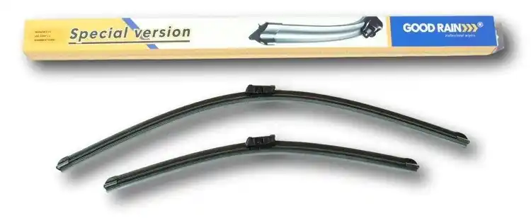 Nowe wycieraczki ; zapakowane woryginalne opakowanie producenta. Cena zakupu dotyczy 1kompletu (stronakierowcy i pasażera).Wycieraczki Good Rain na przednią szybęsamochodu posiadają konstrukcję bezprzegubową. Guma w wycieraczkachpokryta jest specjalną powłoką, dzięki, której szyba jest bardzo dobrzeczyszczona. Na całej długości wycieraczki znajduje się spojler, któregozadaniem jest dociskanie jej do powierzchni szyby, nawet przy dużychprędkościach. Duży wpływ na dobre przyleganie wycieraczek do szyby samochodu marównież zastosowana w ich konstrukcji specjalna prowadnica, dzięki, której siłanacisku jest regularnie rozłożona na całej długości pióra wycieraczki. Stałynadzór nad procesem produkcji oraz wysokiej jakości produkty użytedo ich wykonania sprawiają , że wycieraczki te, profesjonalnie spisują się wkażdych warunkach atmosferycznych. Zalety wycieraczek Good Rain:- bardzo łatwy montażna ramiona- wysoka jakość za przystępną cenę- skuteczne wycieranie szyby- zmniejszenie szumu powietrza poprzez bardziejopływowy kształt- zaawansowana technologia i nowoczesnywyglądJak dbać o wycieraczki:- pamiętaj, aby dbać o gumę wycieraczkiusuwając z niej brud, owady itp., które osiadły podczas jej pracy (wykorzystaćmożna do tego łagodny detergent); zapominanie o usuwaniu zanieczyszczeń, możedoprowadzić do uszkodzenia gumy wycieraczki- nigdy nie używaj wycieraczek, gdyszyba jest sucha; tarcie gumy po suchej szybie może doprowadzić doszybkiego jej zużycia- jeżeli wycieraczka na szybiepodskakuje, może to być oznaką, że ramię wycieraczki jest skrzywione; w takimprzypadku należy dokonać jego regulacji- jeżeli planujesz pozostawieniesamochodu na słońcu przez kilka dni, ustaw wycieraczki tak, aby niestykały się z szybą- po wizycie na myjni, pamiętaj, abyzawsze dokładnie oczyścić szybę, ponieważ znajdujący się na niej wosk, możepowodować przeskakiwanie wycieraczki- pamiętaj również,aby nie uruchamiać wycieraczek na zamarzniętej szybie; może to bowiemdoprowadzić do ich uszkodzenia lub oderwania gumy od mocowania.