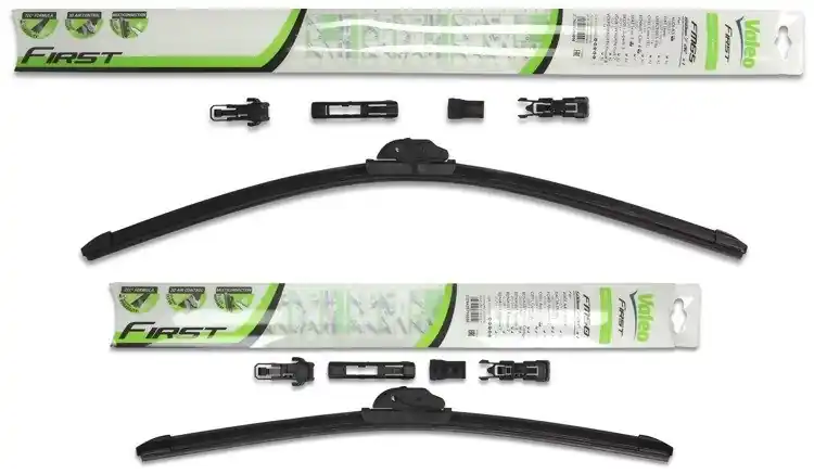 Nowe wycieraczki; zapakowane w oryginalne opakowanie producenta. Cena zakupu dotyczy 1kompletu (strona kierowcy i pasażera).Wycieraczki Valeo First Multiconnection to wysoka jakość i atrakcyjna cena.Bezszkieletowe wycieraczki Valeo First posiadają metalowe listwy, które zapewniają optymalny docisk do powierzchni szyby, a tym samym doskonałą widoczność nawet w niekorzystnych warunkach atmosferycznych.Gumowe pióra wycieraczek wykonane są ze specjalnej mieszanki obrabianego kauczuku, co znacznie poprawia skuteczność czyszczenia powierzchni szyby.Innowacyjny kształt spojlera w technologii „PYRAMID” zapewnia optymalny docisk do powierzchni szyby oraz cichą pracę nawet przy dużych prędkościach.Na opakowaniu wycieraczek First Multiconnection podany jest sposób ich montażu oraz przykładowa lista zastosowań.Wycieraczki First zostały zaprojektowane i wyprodukowane na całkowicie zautomatyzowanych liniach montażowych w nowych fabrykach Valeo.W opakowaniu wycieraczek First Multiconnection znajduje się kilka adapterów. Klient samodzielnie wybiera i montuje właściwy adapter. Zalety wycieraczek Valeo First Multiconnection:- bardzo łatwy montaż- precyzyjne wycieranie szyby- zmniejszenie szumu powietrza poprzez bardziej opływowy kształt- nie zamarzanie zimą poszczególnych elementów wycieraczki- nowoczesny wygląd- spojler na całej długości, poprawiający przyleganie wycieraczki do powierzchni szyby przy dużych  prędkościach.Jak dbać o wycieraczki:- pamiętaj, aby dbać o gumę wycieraczki usuwając z niej brud, owady itp., które osiadły podczas jej pracy (wykorzystać można do tego łagodny detergent); zapominanie o usuwaniu zanieczyszczeń, może doprowadzić do uszkodzenia gumy wycieraczki- nigdy nie używaj wycieraczek, gdy szyba jest sucha;  tarcie gumy po suchej szybie może doprowadzić do szybkiego jej zużycia- jeżeli wycieraczka na szybie podskakuje, może to być oznaką, że ramię wycieraczki jest skrzywione; w takim przypadku należy dokonać jego regulacji- jeżeli planujesz pozostawienie samochodu  na słońcu przez kilka dni, ustaw wycieraczki tak, aby nie stykały się z szybą- po wizycie na myjni, pamiętaj, aby zawsze dokładnie oczyścić szybę, ponieważ znajdujący się na niej wosk, może powodować przeskakiwanie wycieraczki- pamiętaj również, aby nie uruchamiać wycieraczek na zamarzniętej szybie; może to bowiem doprowadzić do ich uszkodzenia lub oderwania gumy od mocowania.