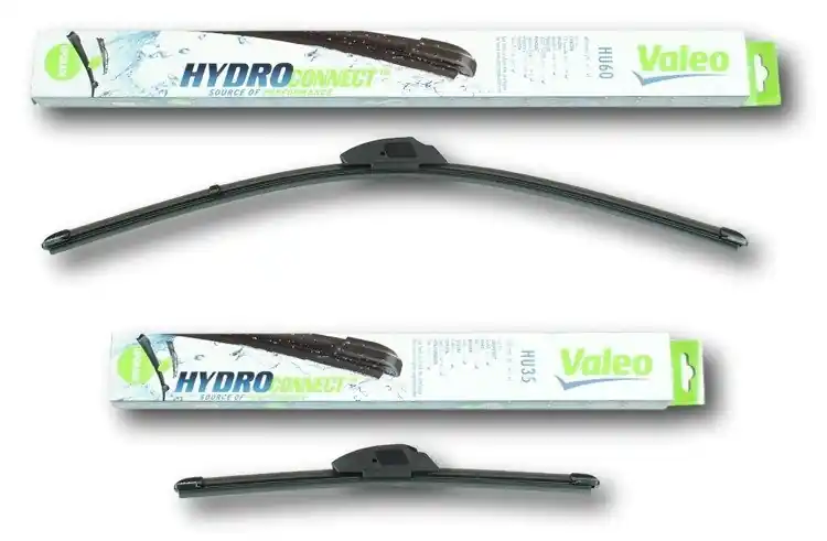 Nowe wycieraczki; zapakowane w oryginalne opakowanie producenta. Cena zakupu dotyczy 1kompletu (strona kierowcy i pasażera).Wycieraczki Valeo HydroConnect na przednią szybę mają konstrukcję aerodynamiczną i nie posiadają klasycznych przegubów. Na całej ich długości znajduje się spojler, który ma za zadanie dociskać wycieraczkę do szyby, nawet przy dużych prędkościach. W konstrukcji wycieraczki zastosowano stalowe listwy, dzięki którym wycieraczka dobrze przylega do szyby (regularnie rozłożona siła nacisku na całej długości pióra wycieraczki). Specjalny skład gumy sprawia, że doskonale spisują się one w każdych warunkach atmosferycznych; dodatkowo guma ta posiada specjalne struktury (kanaliki), które rozprowadzają płyn do spryskiwaczy po całej szybie.Wycieraczki montuje się bardzo szybko i sprawnie; obrazkowa instrukcja montażu znajduje się na ich opakowaniu.Zalety wycieraczek ValeoHydroConnect:- bardzo łatwy montaż na ramiona typu „U”- precyzyjne wycieranie szyby- zmniejszenie szumu powietrza poprzez bardziej opływowy kształt- nie zamarzanie zimą poszczególnych elementów wycieraczki (jej konstrukcja składa się z 6-7 elementów)- nowoczesny wygląd- spojler na całej długości, poprawiający przyleganie wycieraczki do powierzchni szyby przy dużych prędkościach.Jak dbać o wycieraczki:- pamiętaj, aby dbać o gumę wycieraczki usuwając z niej brud, owady itp., które osiadły podczas jej pracy (wykorzystać można do tego łagodny detergent); zapominanie o usuwaniu zanieczyszczeń, może doprowadzić do uszkodzenia gumy wycieraczki- nigdy nie używaj wycieraczek, gdy szyba jest sucha; tarcie gumy po suchej szybie może doprowadzić do szybkiego jej zużycia- jeżeli wycieraczka na szybie podskakuje, może to być oznaką, że ramię wycieraczki jest skrzywione; w takim przypadku należy dokonać jego regulacji- jeżeli planujesz pozostawienie samochodu na słońcu przez kilka dni, ustaw wycieraczki tak, aby nie stykały się z szybą- po wizycie na myjni, pamiętaj, aby zawsze dokładnie oczyścić szybę, ponieważ znajdujący się na niej wosk, może powodować przeskakiwanie wycieraczki- pamiętaj również, aby nie uruchamiać wycieraczek na zamarzniętej szybie; może to bowiem doprowadzić do ich uszkodzenia lub oderwania gumy od mocowania.