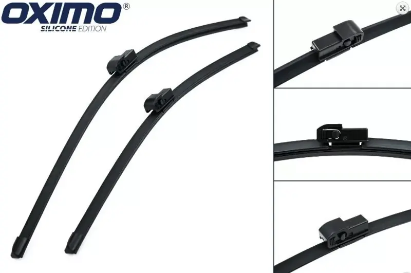 Wycieraczki okonstrukcji bezszkieletowej ze zintegrowanym spojlerem, komplet 2 szt. na przednią szybę, posiadają dedykowane mocowania orazodpowiednie długości ( mm ) pod konkretny model irocznik. Pióra wykonane zmieszanki silikonowo-kauczukowej. Części metalowe wykonane zwytrzymałej stali typu High-Carbon wcałości ocynkowanej, aby długo iskutecznie chronić przed korozją. Długości wycieraczek wtym modelu to odpowiednio 600mm po stronie kierowcy i475mm po stronie pasażera. Nazwa: ZESTAW WYCIERACZEK NA PRZÓD OXIMO WEX4504501 – wersja: bezszkieletowe płaskie gumowe. Rozmiar (lewa/prawa) 550 mm / 550 mm Zamienniki: WEX450450 (wersja wycieraczek szkieletowych, stelażowe). Płaskie wycieraczki Oximo to zamiennik serwisowych, często dość drogich wycieraczek. Stworzone zmieszanki gumy zdodatkiem silikonu zapewniają dobre zbieranie wody orazcichą pracę. Istotnym elementem wycieraczek jest sposób mocowania. Woferowanej wersji adapter montażowy jest zgodny zfabrycznym – zamocowany na stałe idedykowany do konkretnego modelu auta, co znacznie ułatwia montaż. Produkty Oximo to wycieraczki klasy ekonomicznej charakteryzujące się wysokim współczynnikiem jakości do ceny. Wswojej kategorii należą do najlepszych na rynku iczęsto są porównywane do znacznie droższych produktów wiodących firm. Zalety wycieraczek Oximo : nowoczesna konstrukcja bezprzegubowa bardzo dobry współczynnik jakości do ceny dedykowany iniewymienny uchwyt zgodny zfabrycznym gumka zbierająca zdodatkiem silikonu cicha praca wzmocniony uchwyt odporność na korozję łatwy montaż