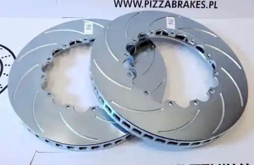Tarcze hamulcowe K-SPORT D2 330x32mm Zestaw tarcz hamulcowychPIZZABRAKES SPORT- tarcze z półki performance/sport o podwyższonej jakości i odporności. Tarcze cynkowane, odporne na korozję i wysokie temperatury. Tarcze w wersji nacinanej cechuje poprawiona skuteczność odprowadzania gazów, lepsze chłodzenie hamulców oraz zapobiega tzw. szkleniu się klocka hamulcowego. Wszystkie tarcze hamulcowe są zabezpieczone antykorozyjnie warstwą cynku w tym przypadku w kolorze SREBRNYM. Model PIZZABRAKES SPORT – CUT Pasują do zestawów K-sport / D2 z dzwonami na 12 śrub Są to tarcze 2-częściowe, do montażu wymagany jest oryginalny dzwon z zestawu i śruby!! Istnieje możliwość wykonania dzwonu tarcz pod dowolny model samochodu do konstrukcji tak zwanego Big Brake Kitu lub jako zamiennik do tarcz 1-częściowych o tych samych wymiarach – w tym celu prosimy o kontakt aby ustalić szczegóły Wymiary: średnica 330mm Grubość max/min 32/30mm Ilość śrub – 12 Rozstaw śrub – 215.9mm Otwory – 8mm Waga – 6.1 kg Tarcze nacinane Tarcze cynkowane na srebrno TARCZE NACINANE! Podana cena jest za komplet tarcz (2 sztuki) – bez dzwonów i śrub montażowych. TARCZE DOSTĘPNE S NA ZAMWIENIE, PROSZĘ O KONTAKT PRZED ZAKUPEM!! W zestawach ksport/d2 występowały tarcze z dwoma rozmiarami śrub (6.4 i 8mm) oraz w dwóch rozstawach (191mm i 215.9mm) Prosimy o uważne sprawdzenie parametrów lub o kontakt w celu dobrania właściwych tarcz przed zakupem. Tarcze hamulcowe doskonale sprawdzą się w mieście oraz na wszelkiego rodzaju imprezach sportowych takich jak: Time attack, tor poznań, tptd, tor poznan porsche club, track day, superoes, kjs, rajd, wyścig, wyscigi gorskie, ulez, slomczyn, rallycross, rajdy, alt, drifting, kielce.