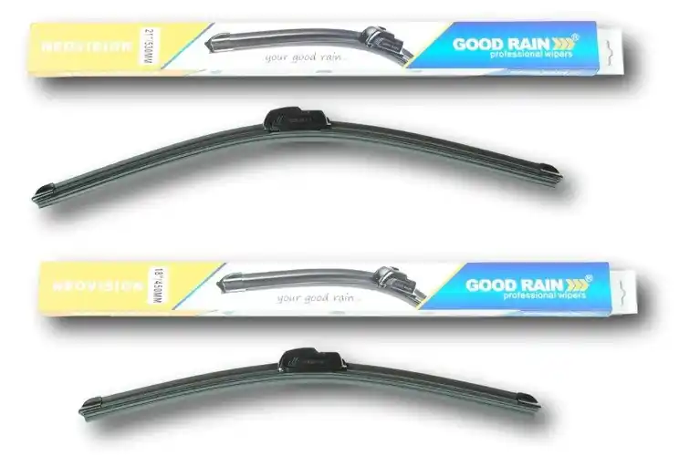 Nowe wycieraczki ;  zapakowane woryginalne opakowanie producenta. Cena zakupu dotyczy 1kompletu (stronakierowcy i pasażera).Wycieraczki Good Rain na przednią szybęsamochodu posiadają  konstrukcję bezprzegubową. Guma w wycieraczkachpokryta jest specjalną powłoką, dzięki, której szyba jest bardzo dobrzeczyszczona. Na całej długości wycieraczki znajduje się spojler, któregozadaniem jest dociskanie jej do powierzchni szyby, nawet przy dużychprędkościach. Duży wpływ na dobre przyleganie wycieraczek do szyby samochodu marównież zastosowana w ich konstrukcji specjalna prowadnica, dzięki, której siłanacisku jest  regularnie rozłożona na całej długości pióra wycieraczki. Stałynadzór nad  procesem  produkcji oraz wysokiej jakości produkty użytedo ich wykonania sprawiają , że wycieraczki te, profesjonalnie spisują się wkażdych warunkach atmosferycznych.   Zalety wycieraczek Good Rain:- bardzo łatwy montażna ramiona- wysoka jakość za przystępną cenę- skuteczne wycieranie szyby- zmniejszenie szumu powietrza poprzez bardziejopływowy kształt- zaawansowana technologia i nowoczesnywyglądJak dbać o wycieraczki:- pamiętaj, aby dbać o gumę wycieraczkiusuwając z niej brud, owady itp., które osiadły podczas jej pracy (wykorzystaćmożna do tego łagodny detergent); zapominanie o usuwaniu zanieczyszczeń, możedoprowadzić do uszkodzenia gumy wycieraczki- nigdy nie używaj wycieraczek, gdyszyba jest sucha;  tarcie gumy po suchej szybie może doprowadzić doszybkiego jej zużycia- jeżeli wycieraczka na szybiepodskakuje, może to być oznaką, że ramię wycieraczki jest skrzywione; w takimprzypadku należy dokonać jego regulacji- jeżeli planujesz pozostawieniesamochodu  na słońcu przez kilka dni, ustaw wycieraczki tak, aby niestykały się z szybą- po wizycie na myjni, pamiętaj, abyzawsze dokładnie oczyścić szybę, ponieważ znajdujący się na niej wosk, możepowodować przeskakiwanie wycieraczki- pamiętaj również,aby nie uruchamiać wycieraczek  na zamarzniętej szybie; może to bowiemdoprowadzić do ich uszkodzenia lub oderwania gumy od mocowania.