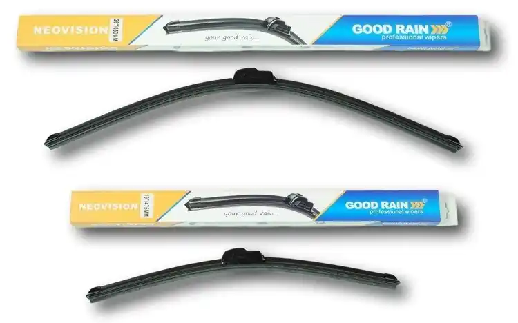 Nowe wycieraczki ;  zapakowane woryginalne opakowanie producenta. Cena zakupu dotyczy 1kompletu (stronakierowcy i pasażera).Wycieraczki Good Rain na przednią szybęsamochodu posiadają  konstrukcję bezprzegubową. Guma w wycieraczkachpokryta jest specjalną powłoką, dzięki, której szyba jest bardzo dobrzeczyszczona. Na całej długości wycieraczki znajduje się spojler, któregozadaniem jest dociskanie jej do powierzchni szyby, nawet przy dużychprędkościach. Duży wpływ na dobre przyleganie wycieraczek do szyby samochodu marównież zastosowana w ich konstrukcji specjalna prowadnica, dzięki, której siłanacisku jest  regularnie rozłożona na całej długości pióra wycieraczki. Stałynadzór nad  procesem  produkcji oraz wysokiej jakości produkty użytedo ich wykonania sprawiają , że wycieraczki te, profesjonalnie spisują się wkażdych warunkach atmosferycznych.   Zalety wycieraczek Good Rain:- bardzo łatwy montażna ramiona- wysoka jakość za przystępną cenę- skuteczne wycieranie szyby- zmniejszenie szumu powietrza poprzez bardziejopływowy kształt- zaawansowana technologia i nowoczesnywyglądJak dbać o wycieraczki:- pamiętaj, aby dbać o gumę wycieraczkiusuwając z niej brud, owady itp., które osiadły podczas jej pracy (wykorzystaćmożna do tego łagodny detergent); zapominanie o usuwaniu zanieczyszczeń, możedoprowadzić do uszkodzenia gumy wycieraczki- nigdy nie używaj wycieraczek, gdyszyba jest sucha;  tarcie gumy po suchej szybie może doprowadzić doszybkiego jej zużycia- jeżeli wycieraczka na szybiepodskakuje, może to być oznaką, że ramię wycieraczki jest skrzywione; w takimprzypadku należy dokonać jego regulacji- jeżeli planujesz pozostawieniesamochodu  na słońcu przez kilka dni, ustaw wycieraczki tak, aby niestykały się z szybą- po wizycie na myjni, pamiętaj, abyzawsze dokładnie oczyścić szybę, ponieważ znajdujący się na niej wosk, możepowodować przeskakiwanie wycieraczki- pamiętaj również,aby nie uruchamiać wycieraczek  na zamarzniętej szybie; może to bowiemdoprowadzić do ich uszkodzenia lub oderwania gumy od mocowania.